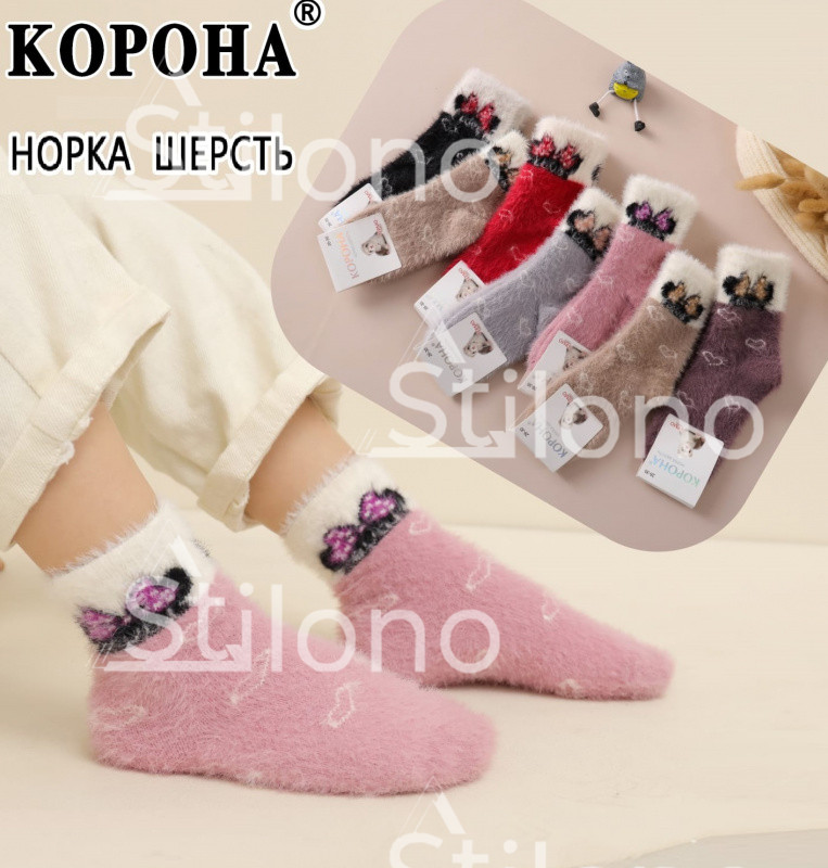 Носки для девочки теплые укороченные из шерсти норки
